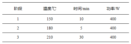 稱取奧美沙坦酯氫氯噻嗪片樣品一片,質(zhì)量約0.22g(精確至0.1mg),加入5mL硝酸、2mL鹽酸、1mL氫氟酸和1mL過(guò)氧化氫,靜置15min左右,待無(wú)明顯反應(yīng)后,組裝消解罐,按照如下設(shè)置參數(shù)進(jìn)行實(shí)驗(yàn):